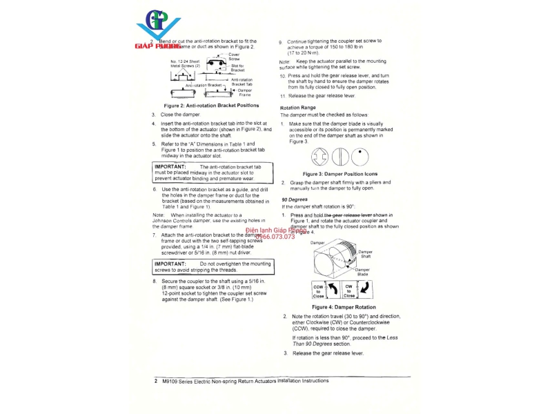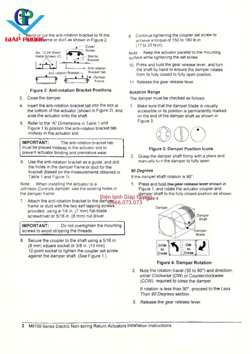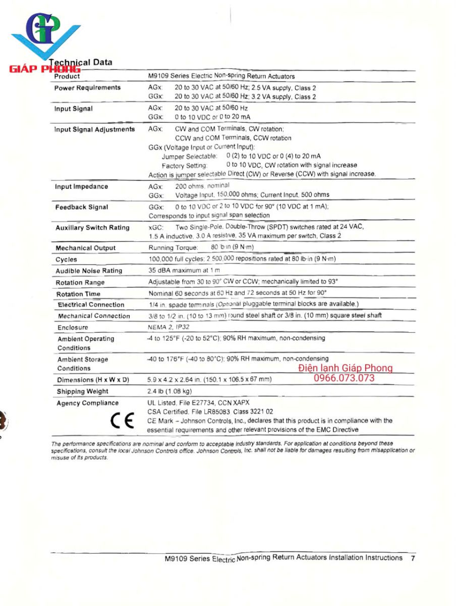 * Tín hiệu phản hồi (Feedback): 0-10 VDC hoặc 2-10 VDC (tương ứng với góc quay 90°).