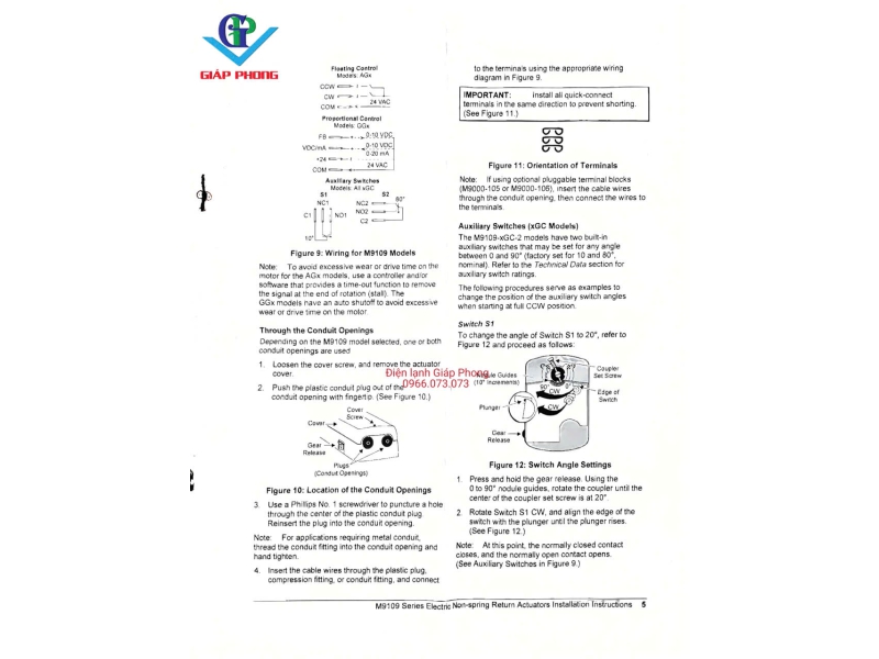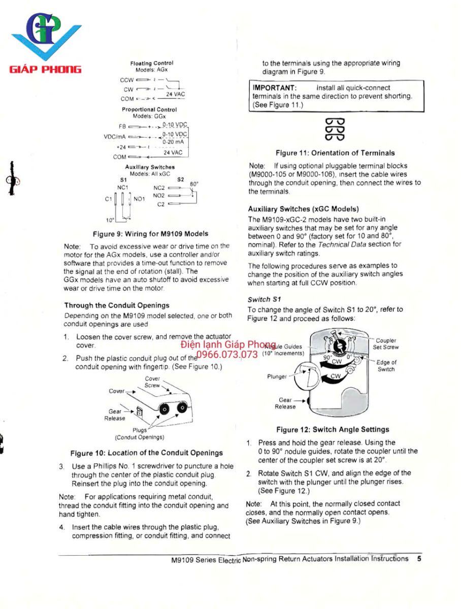 * Điện áp hoạt động: 24V AC (50/60 Hz).