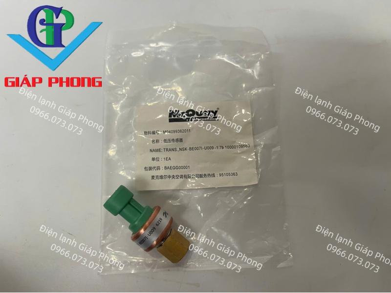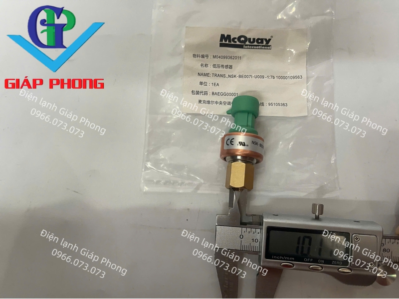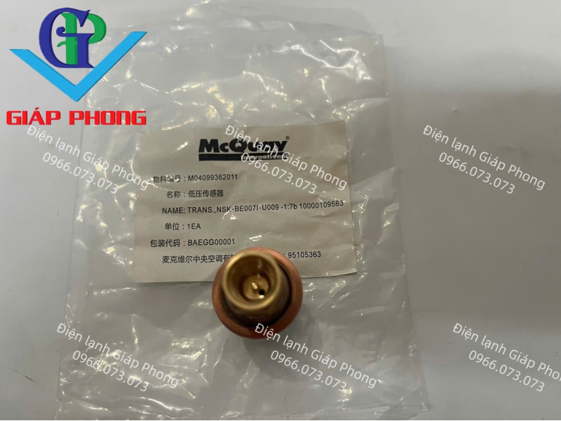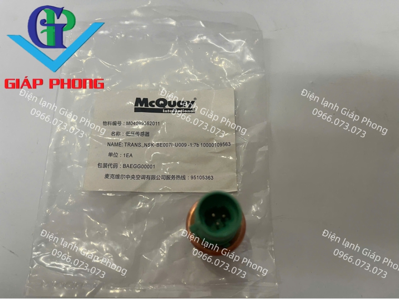 Cảm biến áp suất "McQuay M04099362011" là linh kiện thay thế chính hãng, chuyên dụng cho các dòng máy lạnh trung tâm, hệ thống Chiller của McQuay và Daikin. Sản phẩm đóng vai trò quan trọng trong việc giám sát áp suất thấp của môi chất lạnh, giúp bảo vệ máy nén và duy trì sự ổn định cho toàn bộ hệ